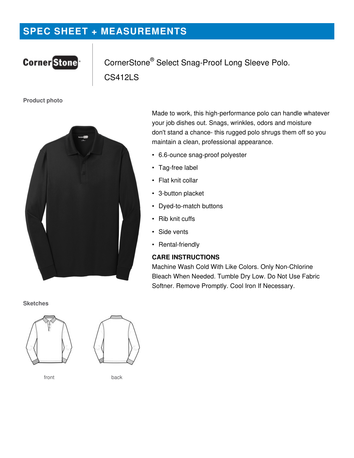 Long sleeve version of CS412 with soil-release fabric.